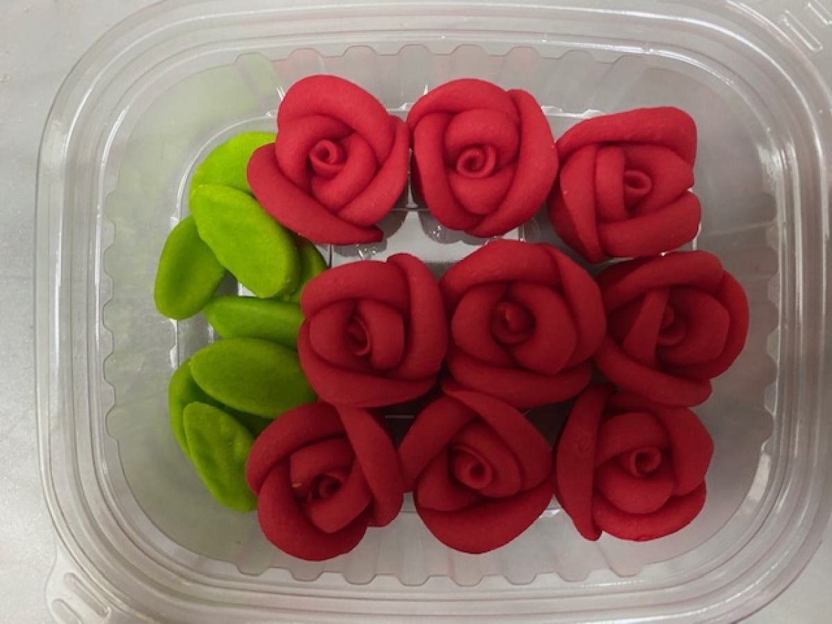 a set of 9 lovely flower with 9 leafs for cake and cupcake decoration